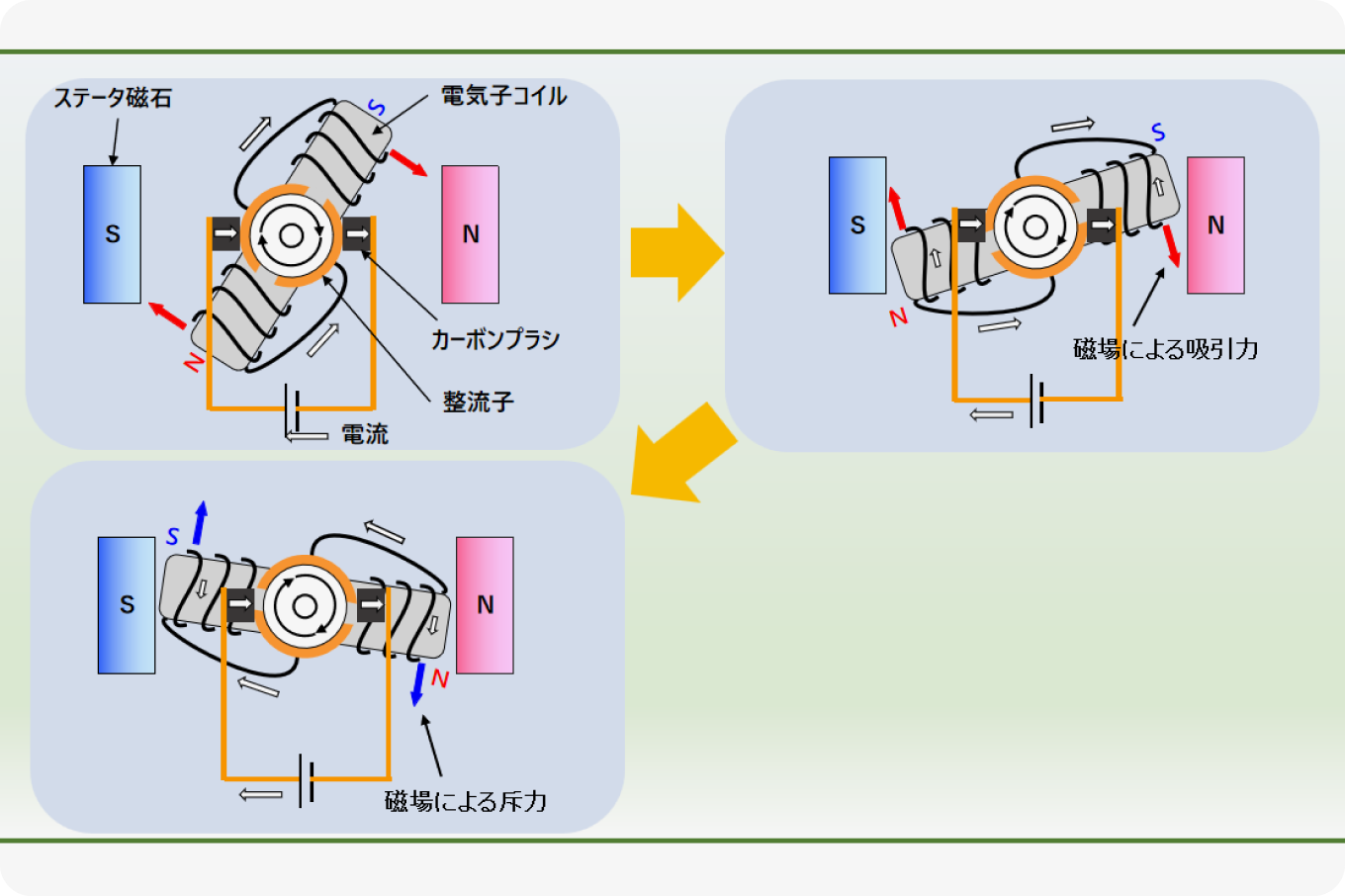 カーボンブラシという名前から、カーボンペーパーやカーボンファイバーと勘違いされがちですが、紙や繊維ではなく炭素(カーボン)を使用したブラシと言う意味でカーボンブラシと呼ばれています。 しかしながら、ブラシという名前からは、歯ブラシや絵筆のような毛を束ねたものを想像してしまいますが、モーターの歴史にその答えを見つける事ができます。